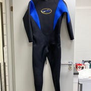 Våddragt i neopren fra Jescuba i marineblå og sølvfarvet. Lang kraftig lynlås med trækstrop i ryggen. Neopren i ca. 2,5 mm tykkelse. Måler 70 cm fra skridt til halskant. Brystmål: Ca. 40 cm. ,Bemærk at mail, chat og beskeder ikke besvares, og varen skal købes på knappen "Gå til varen"