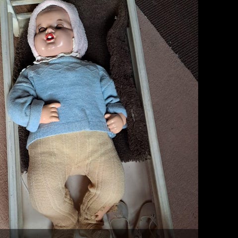 Irsk porcelænsdukke og VIBO dukkesygeseng på hjul