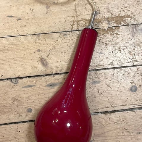 Lampen har en metallisk finish og en klar, rund glasplade. Diameteren er 46cm,Afhentes i:,Røde Kors Tuborgvej / København NV (101),Bemærk at mail, chat og beskeder ikke besvares, og varen skal købes på knappen "Gå til varen"