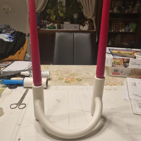 Produktet er en moderne lysestage i grå med plads til to lys.