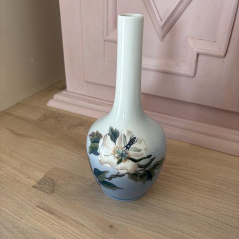 Vaserne er slanke med en glat overflade, dekoreret med blomstermotiv.