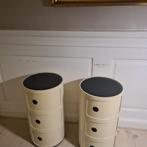 • 2 natborde på hjul i mørkegråt jern (37x38x56 cm)