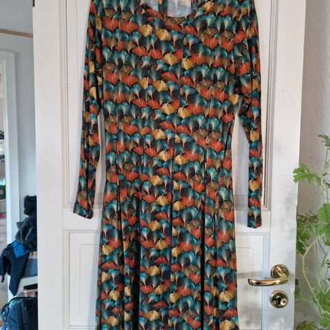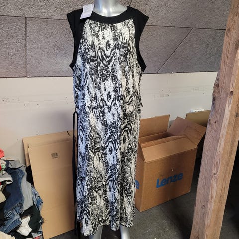 Falder flot, dejlig at have på. Viskose 95% og elastan 5%. Brystmål 50 cm, længde midt bag 90 cm. Brugt få gange