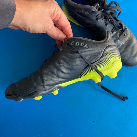 Adidas Copa fodboldstøvler i hvid og rød til piger/ drenge str 33. Støvlerne har en klassisk snøring og er designet til at give optimalt greb på banen. Overdelen er lavet af slidstærkt materiale for øget holdbarhed.