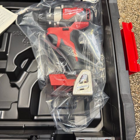 Milwaukee M18 FOPH-0A Multi-Tool i rød og sort. Dette værktøj er designet til alsidige anvendelser og er en del af M18-serien. Det er ideelt til forskellige bygge- og reparationsopgaver. Værktøjet er batteridrevet og tilbyder fleksibilitet og mobilitet i brug.