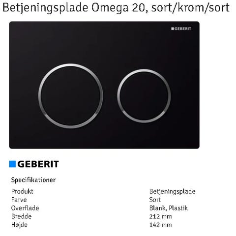 GEBERIT OMEGA 20 ROUND BETJENINGSPLADE SORT/KROM/SORT