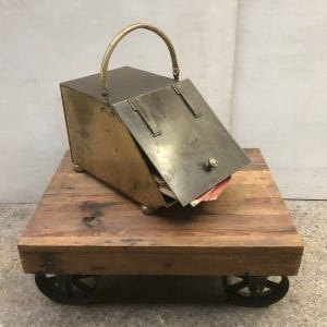 Brændespand, STOR MESSING brænde kedel, Stor 46 cm bred og 25 cm dyb med jernhank
