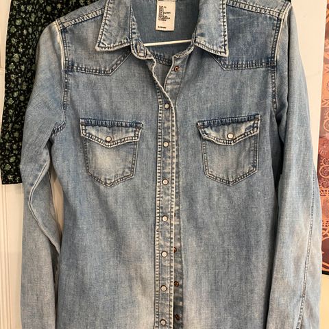 Virkelig fin cowboyskjorte med lidt frynser på brystet og 2 brystlommer med trykknapper. Lyst forvasket cowboystof. Fra Kapp Ahl. Den er pænt lang (82 cm) og har trykknapper med perlemor i midten. Lukkes også med trykknapper ved håndled. Med lille snit ved taljen. Kan sagtens bruges ud over bukser eller nederdel. F.eks. perfekt til linedance eller lignende men også blot almindelig brug. Dejligt kraftigt stof.