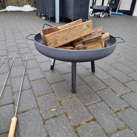 Bålsted, Bålsted med vaskemaskinetrommel. Betonsokkel medfølger ikke.