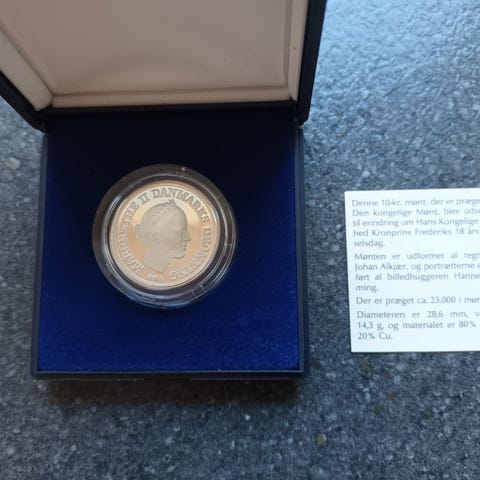Helt ny 10 kr 1986,Kronprins Frederik 18 års fødselsdag, sølv