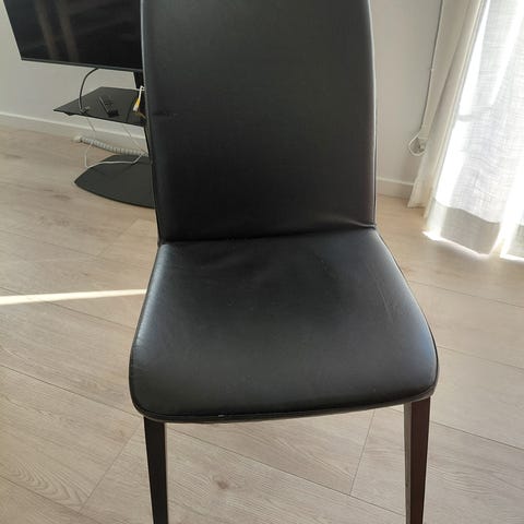 Spisebord m/stole, Bordeaux farvet spisebord m stole pæn velholdt,,men har brugsspor..Ligeledes kan den udvides, så der kan side 6- 7 personer..Der er små brugsspor..