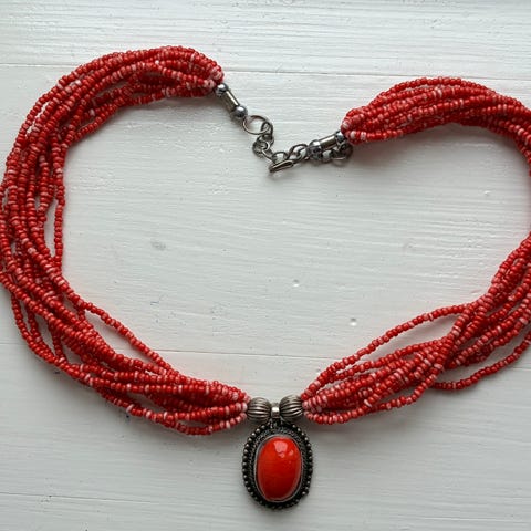 Halskæde, andet materiale, Gemini, Ubrugt Gemini halskæde 42 cm , vedhæng 8 cm med perler og sten