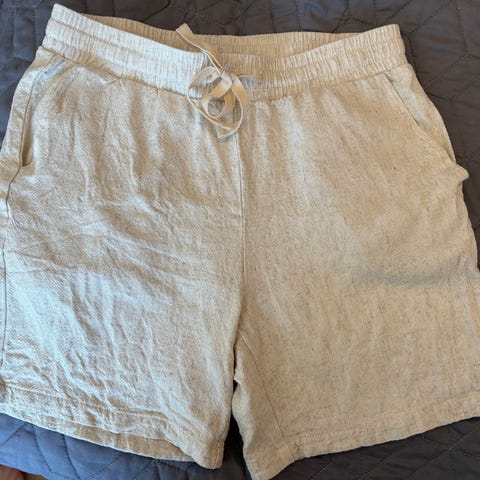 Fine hørshorts i flot grøn farve. Str. 3 år.