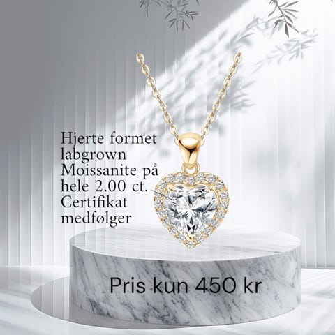 Halskæde, diamant, 2 stk halskæder sælges. Med 1 karat (6,5 mm) moissanite på hver halskæde. moissanite minder om en slags laboratorie fremstillet diamant og har samme hårdhed og levetid som en diamant. Har endnu mere brilliance og shine end en diamant. I kan google moissanite. De er super smukke og er altså ikke zirkon og heller ikke en diamant men den ligner en diamant.. Zirkon er efter min mening ikke flotte og ser døde ud. De har inter tilfælles med moissanite.