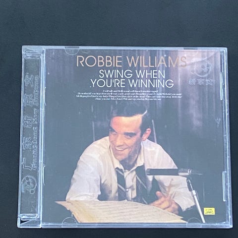 Robbie Williams Swing When You're Winning CD Album. Indeholder en samling af swing-numre fremført af Robbie Williams. Perfekt til fans af swing og jazz-inspireret musik. CD'en kommer i en standard jewel case med albumcover og indlæg.