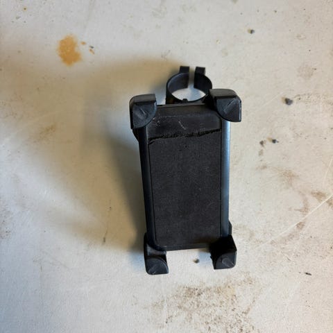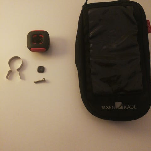 Mobilholderen monteres med stropperne på styret og telefonen holdes på plads af stropper i alle hjørner.