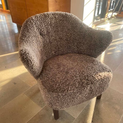 Audo Copenhagen Ingeborg Loungestol med fodskammel Moonlight Sheepskin Eg