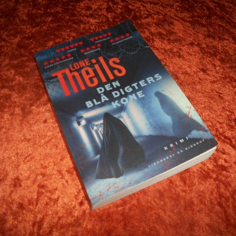 "Den blå digters kone" er andet bind i Lone Theils’ krimi-serie om Nora Sand, der begyndte med "Pigerne fra Englandsbåden" og er solgt til udgivelse i 14 lande.