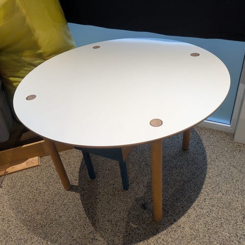 Gammelt FDB skrivebord bordplade skal slibes og males.