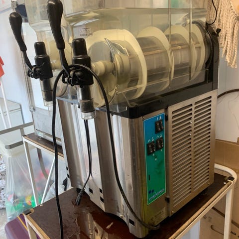 3 kammers SPM slushice maskine med rullebord, beregnet til slushice maskiner medfølger.