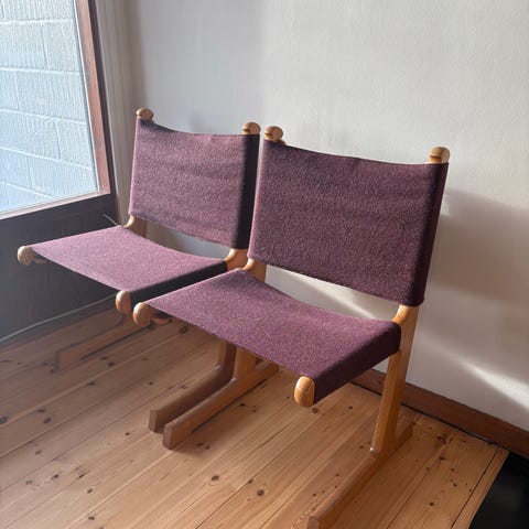 To Miranda loungstole og en skammel. Designet i 1941 af den Svenske møbelarkitekt - Bruno Mathsson.