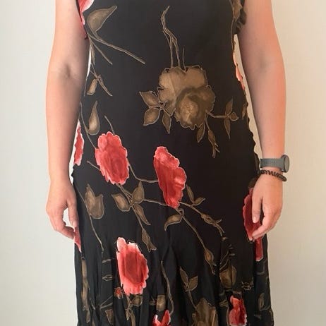 Så flot og behagelig festkjole. Svarer til en 48.