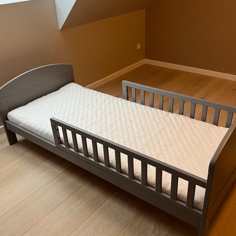 Fin juniorseng. Der medfølger en lille trappe op til sengen med et par trin, som vi tilkøbte i sin tid. Vores dreng har sat klistermærker så det kræver nok lidt rensebenzin. Derudover er en enkelt lammel knækket, men den bemærkes ikke. Køber må gerne få madras med hvis det ønskes.