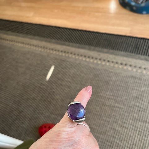 Ring, Ring med lilla og lyse grå sten, lavet af nikkel. Fri forsendelse til pakkeshop