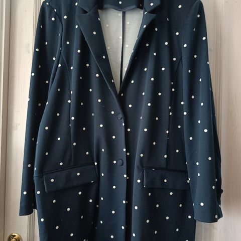 Blazer fra Frankwalder i sort og størrelse 46, brystmål cirka 105 cm og længden cirka 67 cm. Blazeren er fremstillet af 95% polyester og 5% elastan. Blusen medfølger ikke. Bemærk der er trykknaplukning.