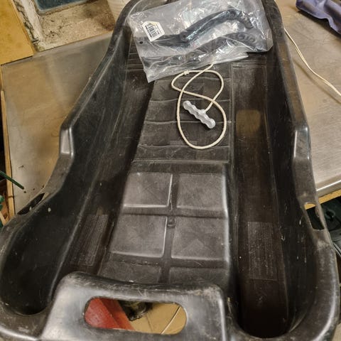 Slæde, Dant Y, sæde som fungerer som slæde som man kan rutsche ned på. Sort. Som ny og helt intakt. Fra ikke ryger hjem. Afhentet eller plus 60 kr. til forpakning og forsendelse med tracking.