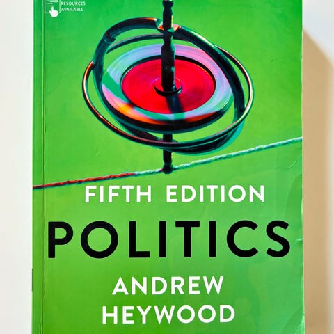 Andrew Heywood Politics bog i tredje udgave. En del af Palgrave Foundations serien. Indeholder omfattende information om politiske teorier og strukturer.