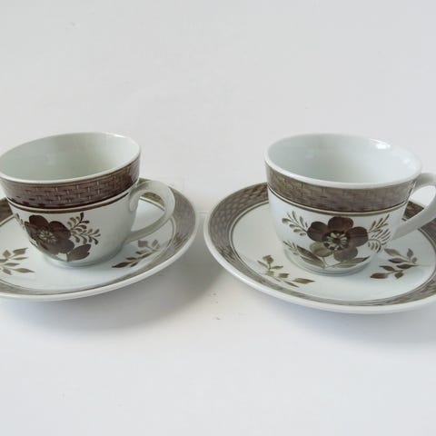 Fajance, Royal Copenhagen, Brun Tranquebar, Brun Tranquebar små mokkakopper med underkopper og sidetallerkener.