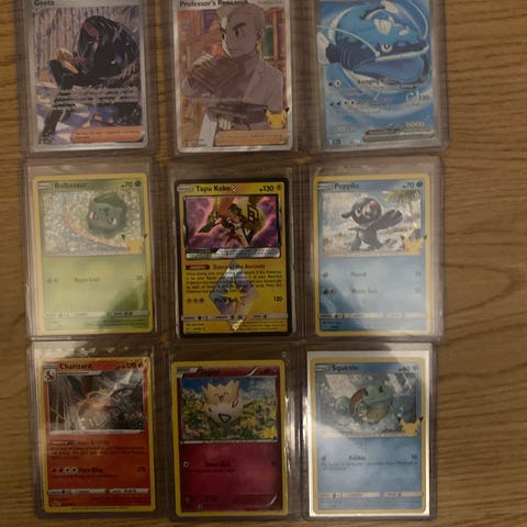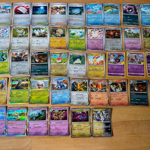 Pokémon kort samling med forskellige kort. Indeholder en blanding af forskellige typer og generationer. Velegnet til samlere eller fans af Pokémon universet.