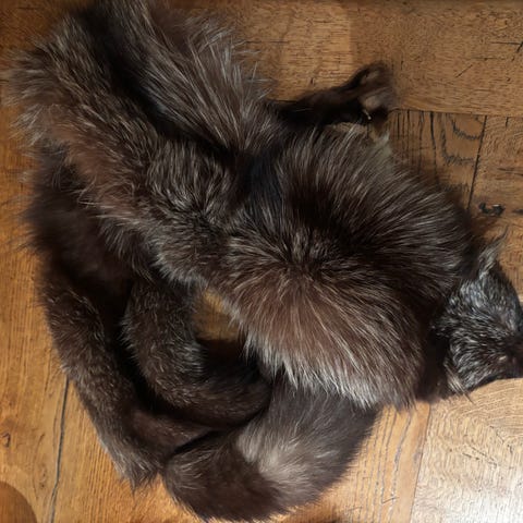 Smuk sølvræv 150 cm. Brugt som halstørklæde. Brug broche/pin til at lukke