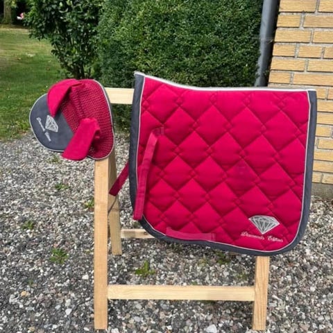 2 sadelunderlag i hhv. sort kr. 85,- og blåt kr. 120,- .