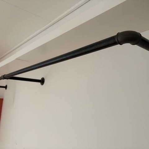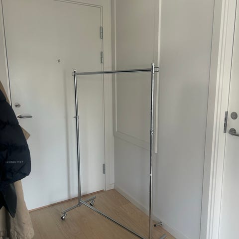 To lange sølvfarvet rør, brugt som bøjlestænger til tøj. Hver stang måler 200 cm i længden og ca. 2,5 cm i diameteren. Sælges helst samlet, men kan også købes individuelt. Kan hentes i København V