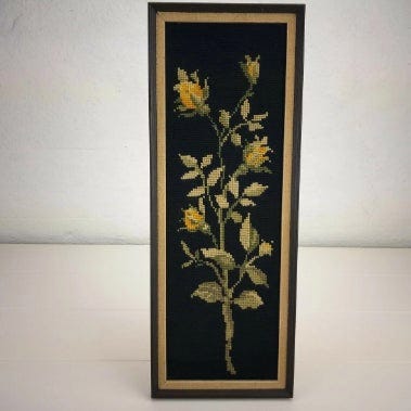 broderi, Indrammet broderi, Vintage. Meget fint håndbroderet billede af en skøn rose. Sender gerne.
