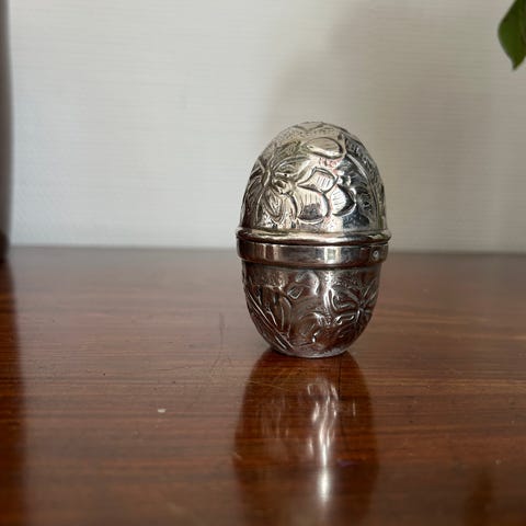 Summerbird stort plet/sølv dekorations æg, med original æske.