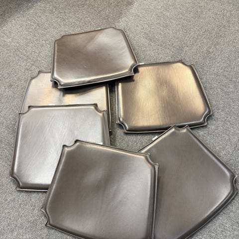 Okseblodsrøde læderhynder til CH24. Flot patinerede og i rigtig god stand, ca 5 år gamle, købt i Illums Bolighus. 6 styks haves og sælges samlet. Stykpris 100 kr.