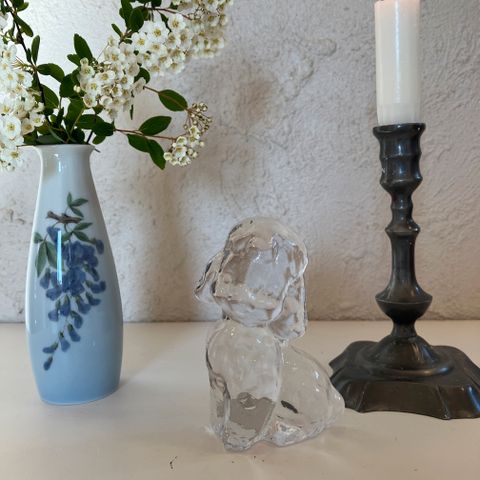 Fin lille hund i glas fra det svenske glasbrug Bergdala. I perfekt stand. Dejlig overflade med tekstur. Flad bagside og flad bund. Højde 6,5 cm. 45 kr. Afhentes i Vanløse eller sendes.