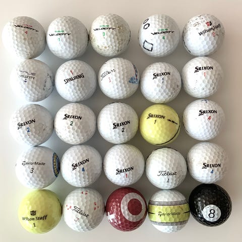 Her får du 15 flotte golfbolde med logoer fra forskellige golfklubber, inkl. f.eks. St.Andrews, Vallensbæk, Give, Aarhus Aadal og Golfpark Hainhaus.