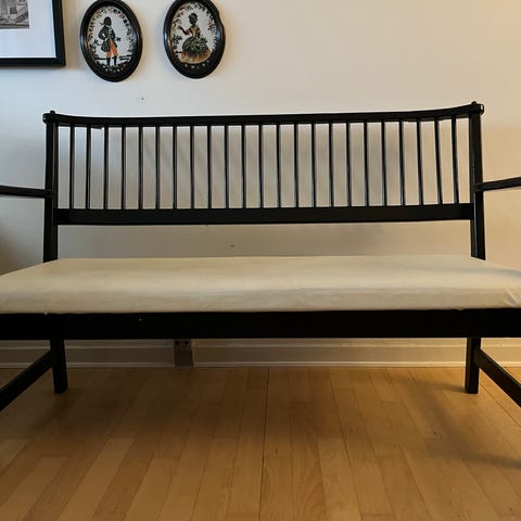 Bænken med 3 sæder har jeg selv tilpasset og forkortet. Den er kun til inspiration, og er ikke til salg.