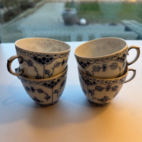 Royal Copenhagen Musselmalet Riflet Kaffekopper Blå Hvid Porcelæn