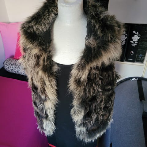 Blød vest med flere forskellige farver pelsstykker. Sendes mod porto med DAO til 45 kr eller hentes på indre Østerbro. Fra ikke-ryger-hjem uden kæledyr.