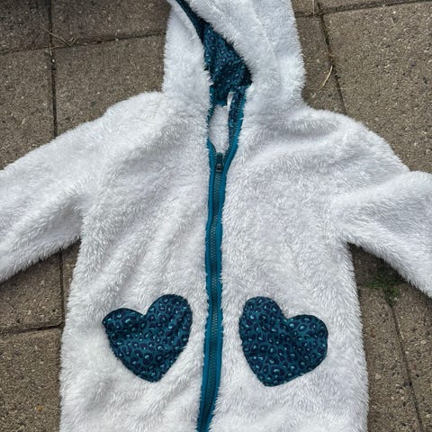 Meget sød hvid plys jakke med ører.