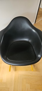 Eames RAR gyngestol i sort medfølgende siddepude i sort læder fra Bent Hansen