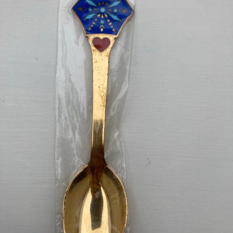 Tulesko 18K forgyldt ske sæt med julemotiver. Sættet indeholder to skeer med dekorative juletemaer på håndtagene. De er fremstillet i forgyldt materiale, hvilket giver dem et elegant udseende. Velegnet til brug ved festlige lejligheder eller som samlerobjekter.