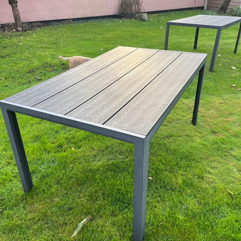 Sælger dette meget fine havebord i hårdt træ, så det kræver minimal vedligeholdelse og kan stå ude.