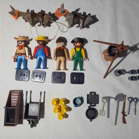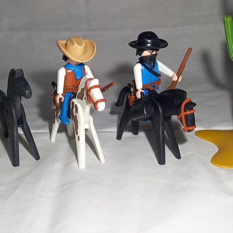Cowboy, bandit, indianere, hund, mexikaner, sherif, gris og heste.