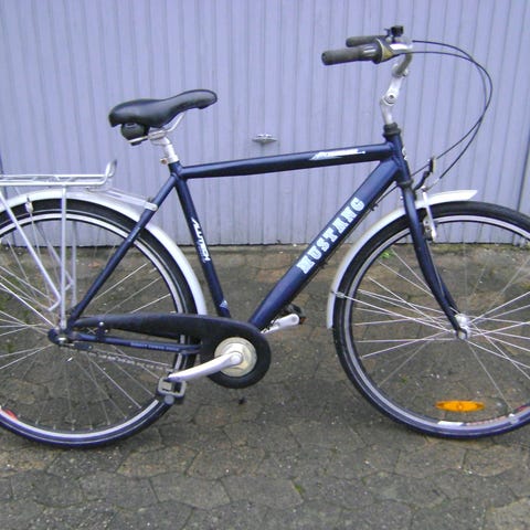 Sælger en sort Mustang citybike med bagagebærer, støtteben og fodbremse. Cyklen kører fint og er klar til brug. Der er lidt rust på styr og bagagebærer, men ellers fungerer den som den skal.